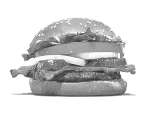 Beef patty, maple-glazed bacon, cheddar cheese, lettuce, caramelized onions.